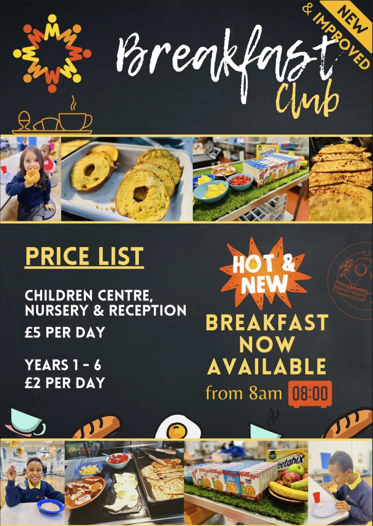 Year 1 to Year 6 Breakfast club costs just £2 per day and for Early years Nursery to Reception Breakfast club costs just £5 per day.